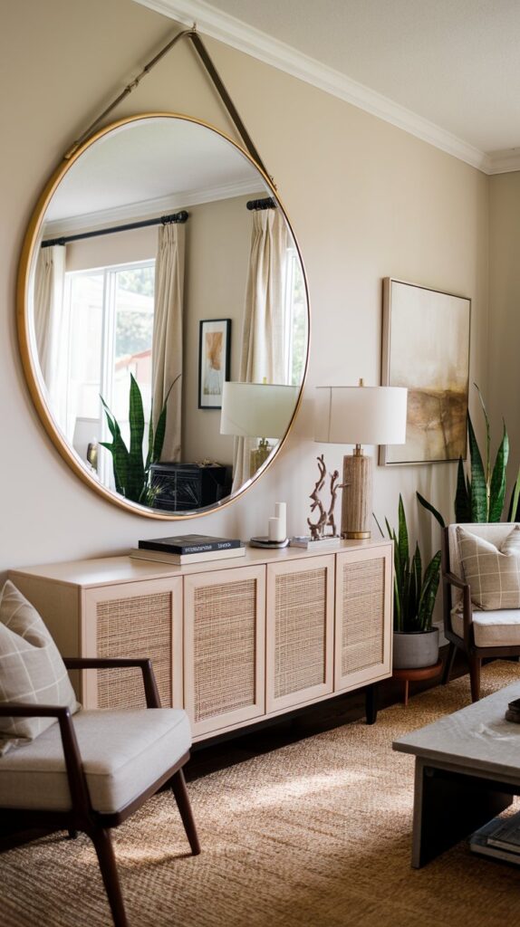 When choosing mirrors, look for ones with unique shapes or eye-catching frames. A round mirror with a metallic border can add a modern touch, while an antique-style mirror with a detailed frame brings in character and charm. You can also experiment with leaning a tall mirror against a wall for a relaxed, contemporary vibe.