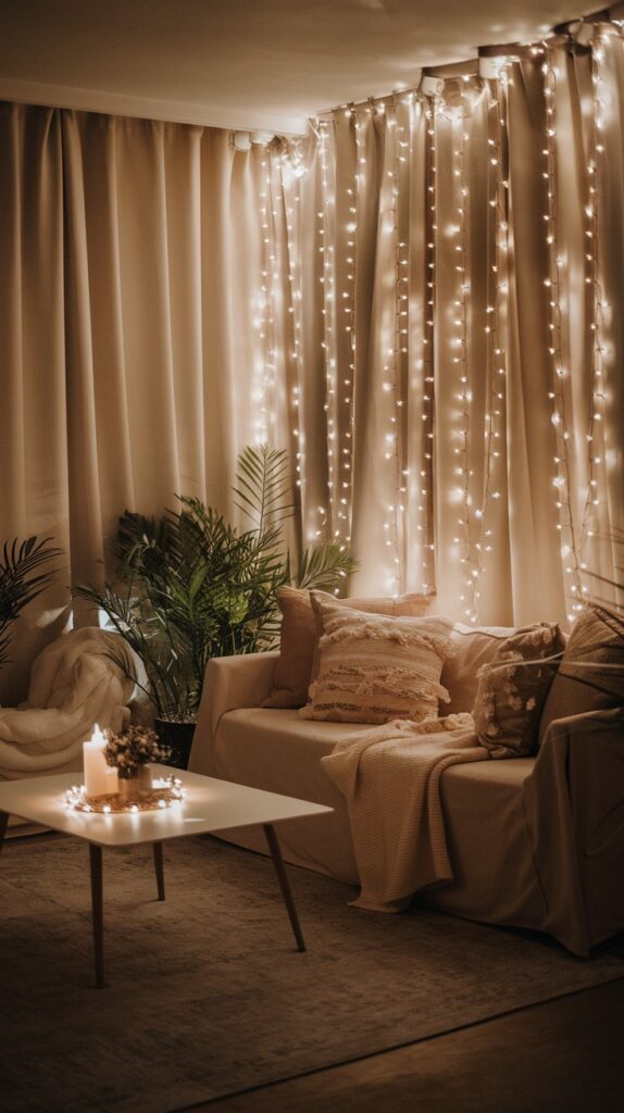 String lights aren’t just for holidays or outdoor spaces—they’re a fantastic way to bring warmth and charm into your living room all year round. With their soft, warm glow, they can instantly create a cozy and inviting atmosphere that’s perfect for relaxing or hosting guests.