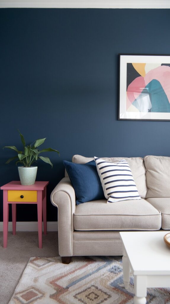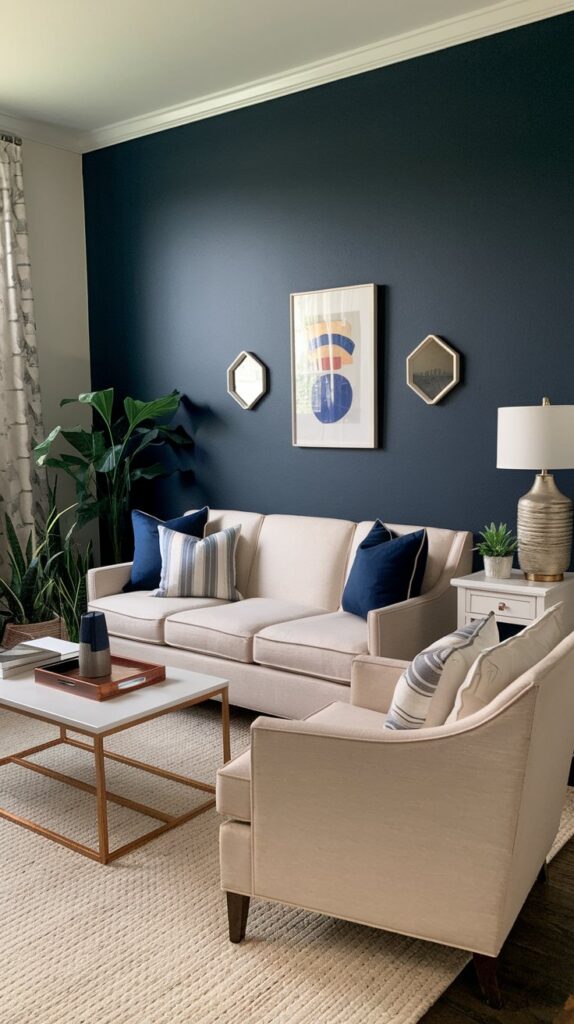 If you want to make a bold statement, consider painting an accent wall. Choose a trendy color, like a deep navy, earthy green, or warm terracotta, to create a striking focal point. An accent wall can highlight key features like a fireplace, a gallery of art, or the area behind your sofa, drawing the eye and adding depth to the room.